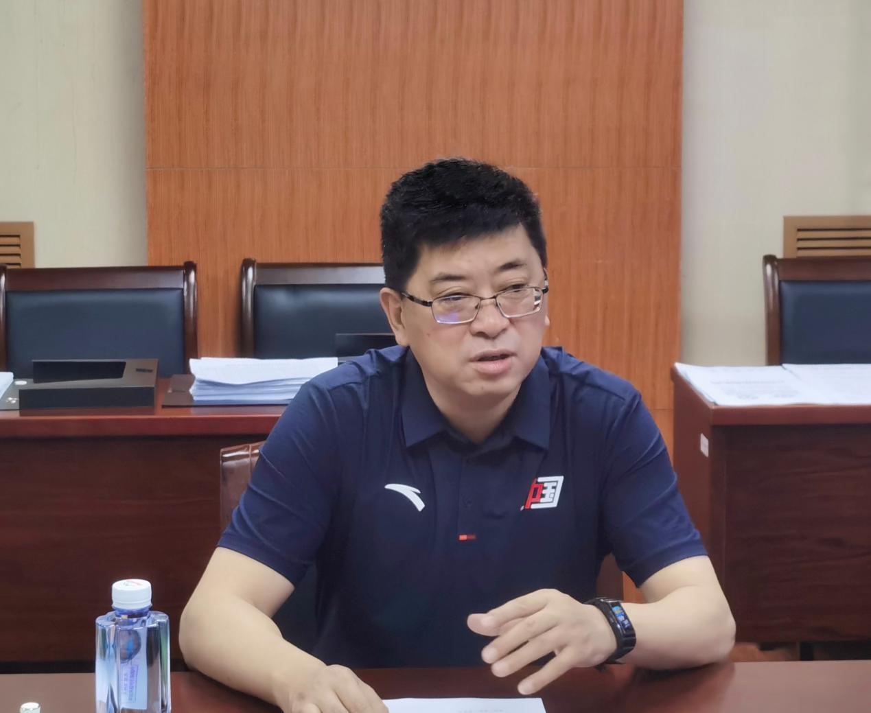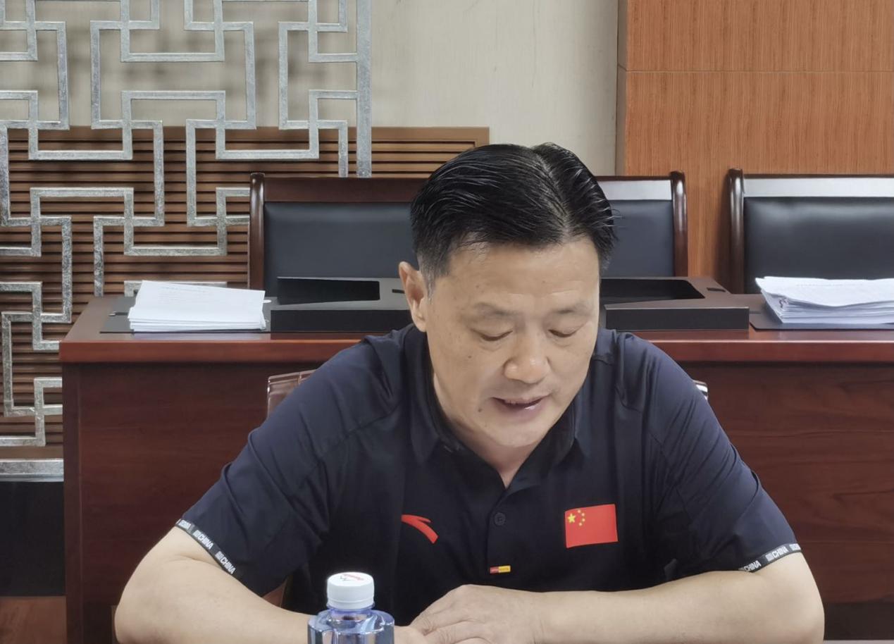 肖校长围绕我校十四运涉赛、参赛人员疫情防控工作的具体推进和落实情况,以及需要省体育局帮助解决的问题进行汇报。金校长做补充汇报。