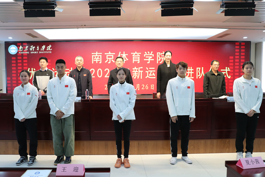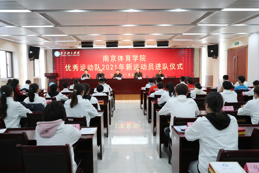 11月26日下午,我校在行政办公楼101会议室举行优秀运动队2021年新运动员集体进队仪式。