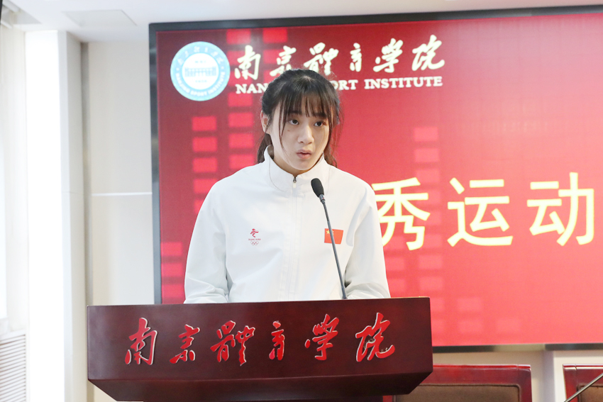 新进队运动员代表、击剑队运动员樊施丽发言