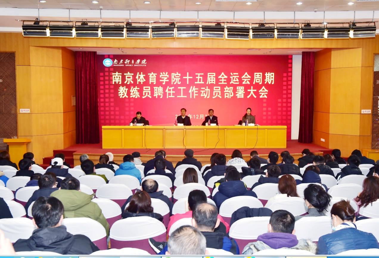 12月3日上午,我校在图书馆第一报告厅召开十五届全运会周期教练员聘任工作动员部署大会。校党委书记朱传耿,校党委副书记、校长杨国庆,校党委常委、副校长金松、肖爱华出席大会。大会由副校长金松主持。