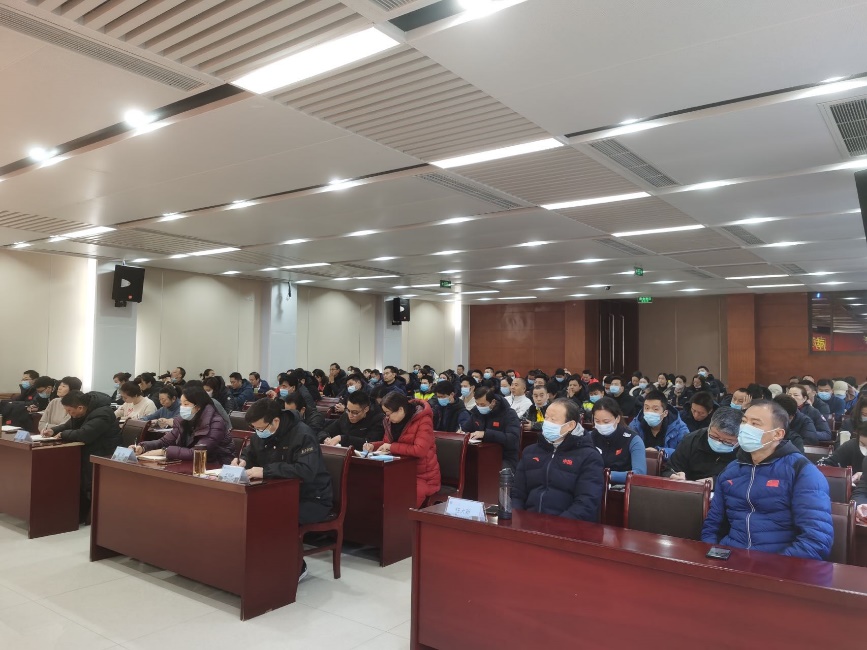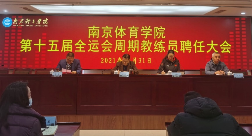 2021年12月31日上午,我校训练部门在行政办公楼101会议室召开十五届全运会周期教练员聘任大会。校党委常委、副校长金松、肖爱华,人事处、训练处负责人出席大会。各竞技体育二级学院、各优秀运动队全体管理干部、全体教练员、训练与管理工作督查组全体同志、训练处全体同志参加大会。大会由人事处处长张敏主持。