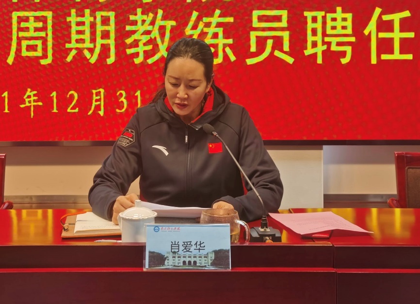 副校长肖爱华宣读了《关于聘任李铭德等101位同志为省优秀运动队教练员的决定》。
