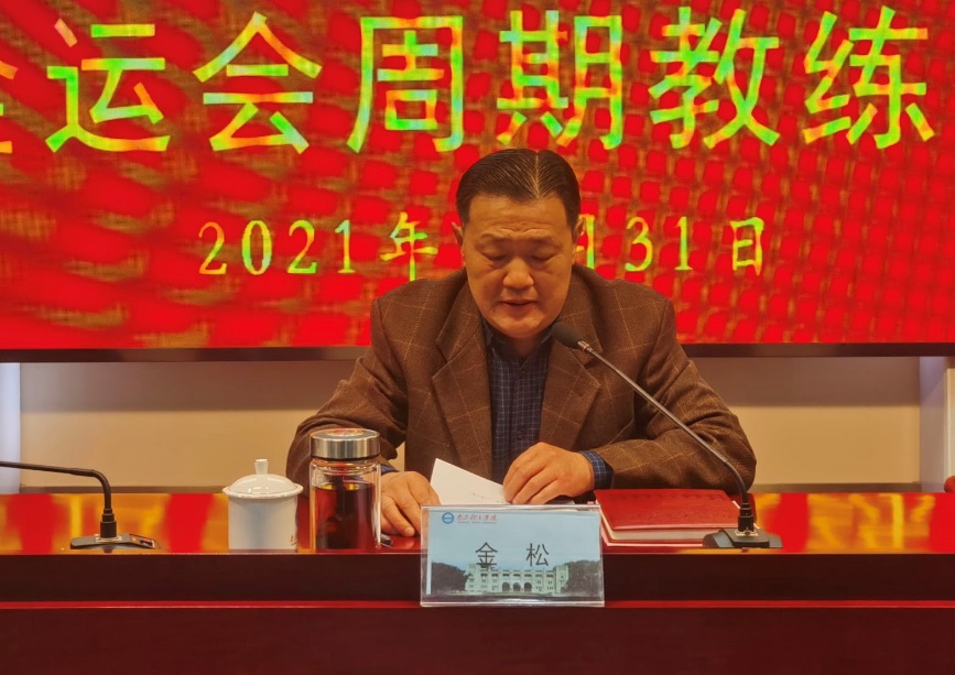 副校长金松在大会讲话中对训练部门全体同志全年的辛勤工作表示了肯定和感谢,希望大家以只争朝夕、时不我待的态度抓紧抓好下一阶段训练工作,切实为新周期起好头、迈好步。金校长在会上对近期有关工作作了具体部署,一是完成十五届周期训练工作规划的编制,二是完成2022年年度训练计划和冬训计划的制定,三是完成运动员队伍整合调整,四是做好运动员体能测试、运动队思想政治工作交流会的各项准备工作,五是做好疫情防控和安全稳定工作。针对疫情防控和安全稳定工作,金校长提出了从严落实防控措施,从严开展漏洞排查,从严管理各类活动,从严管控人员进出校门,从严执行值班检查制度的具体要求,要求院、队高度重视,谁主管谁负责,切实落实“一岗双责”,业务、安全齐抓共管。