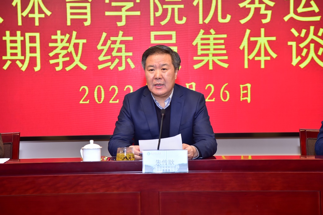 校党委书记朱传耿对新周期教练员进行集体谈话