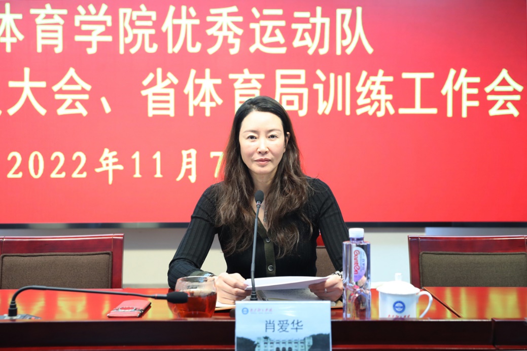 校党委常委、副校长肖爱华主持会议并传达国家体育总局2022-2023年度冬训动员大会、省体育局训练工作会议有关精神。她强调,各院、队会后要深入学习、领队上级会议及学校会议的精神和要求,抓紧、抓实、抓细冬训各项工作,为完成新周期各项训练竞赛任务奠定坚实的基础。