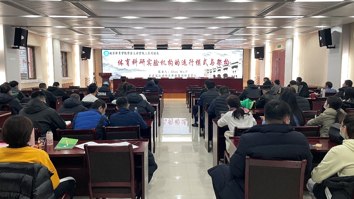 12月9日下午,我校在行政办公楼101会议室举行“十五届周期全运备战紫金大讲堂”线上讲座第二讲。本次讲座由校竞技体育研究院特邀英国体能教练Alex Wolf(亚力克斯·沃尔夫)主讲。