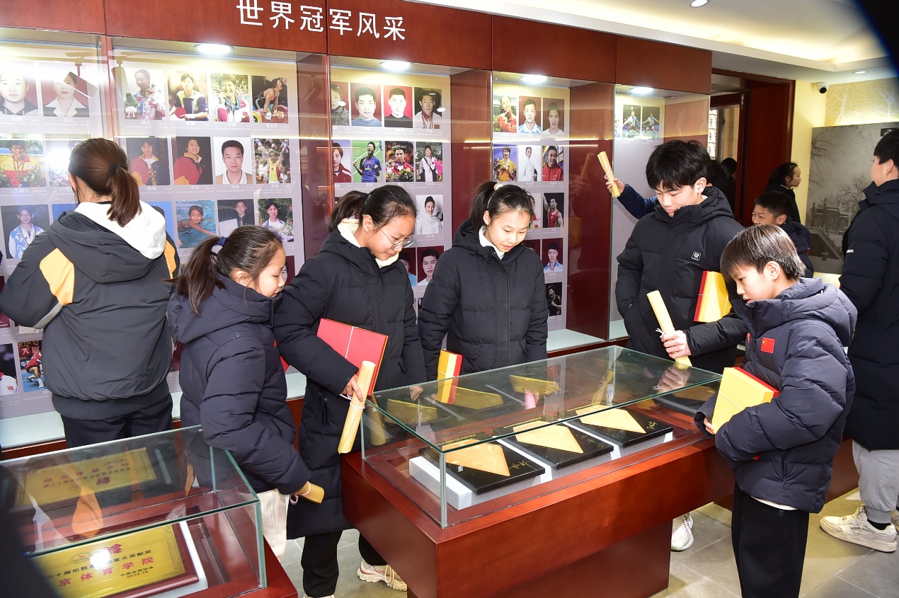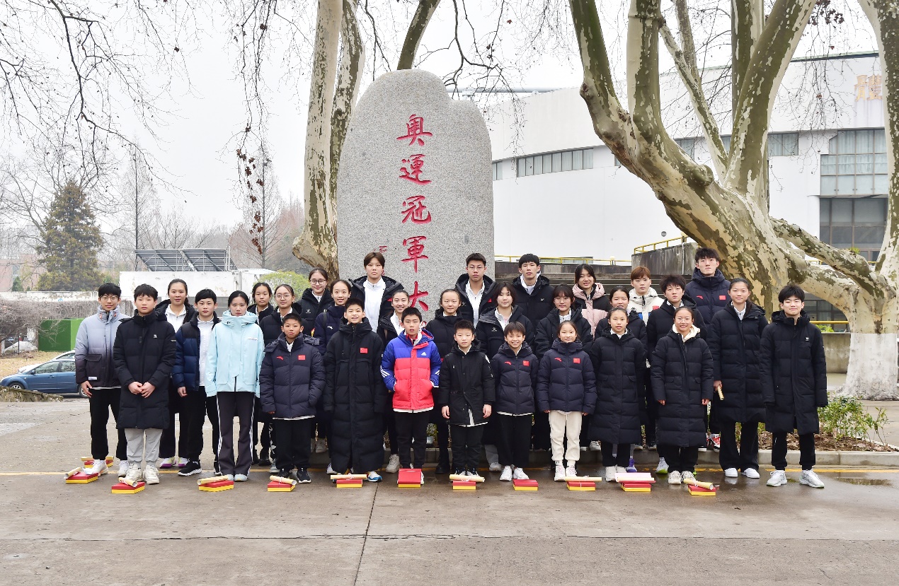 新进运动员集体参观校园并在奥运冠军大道合影留念