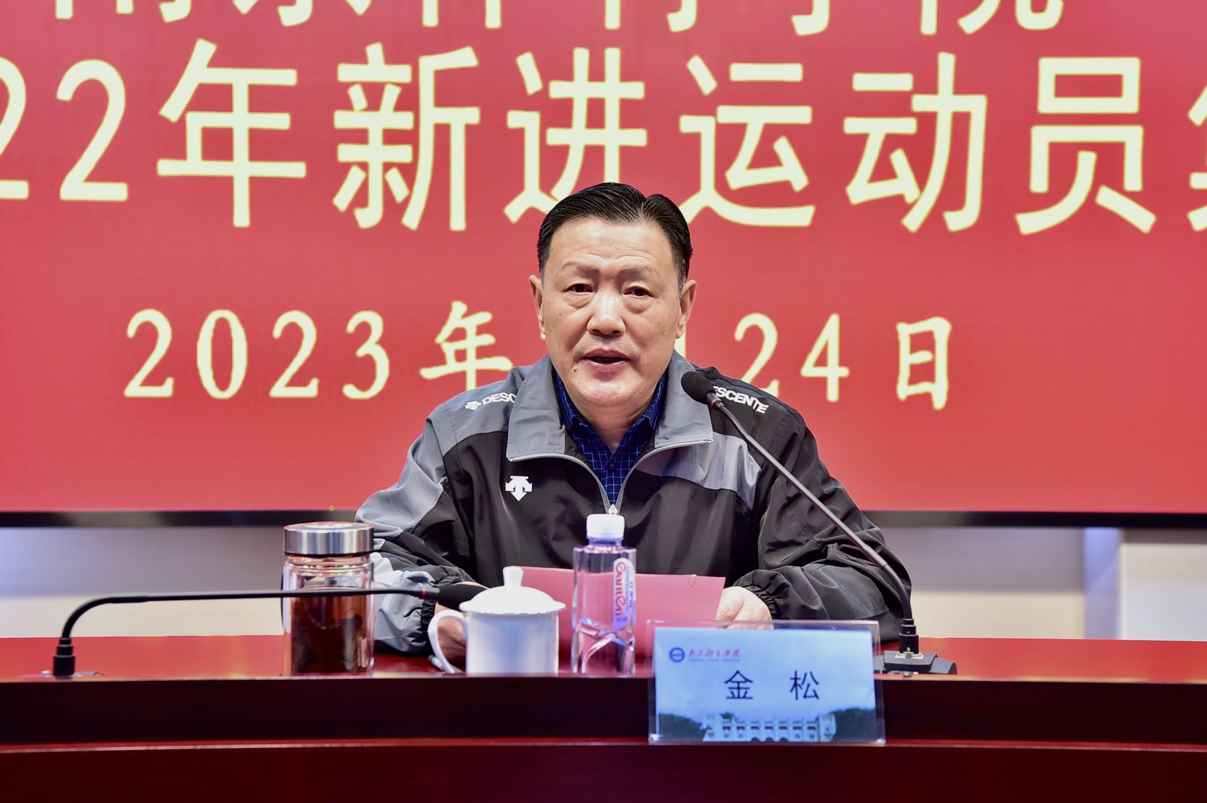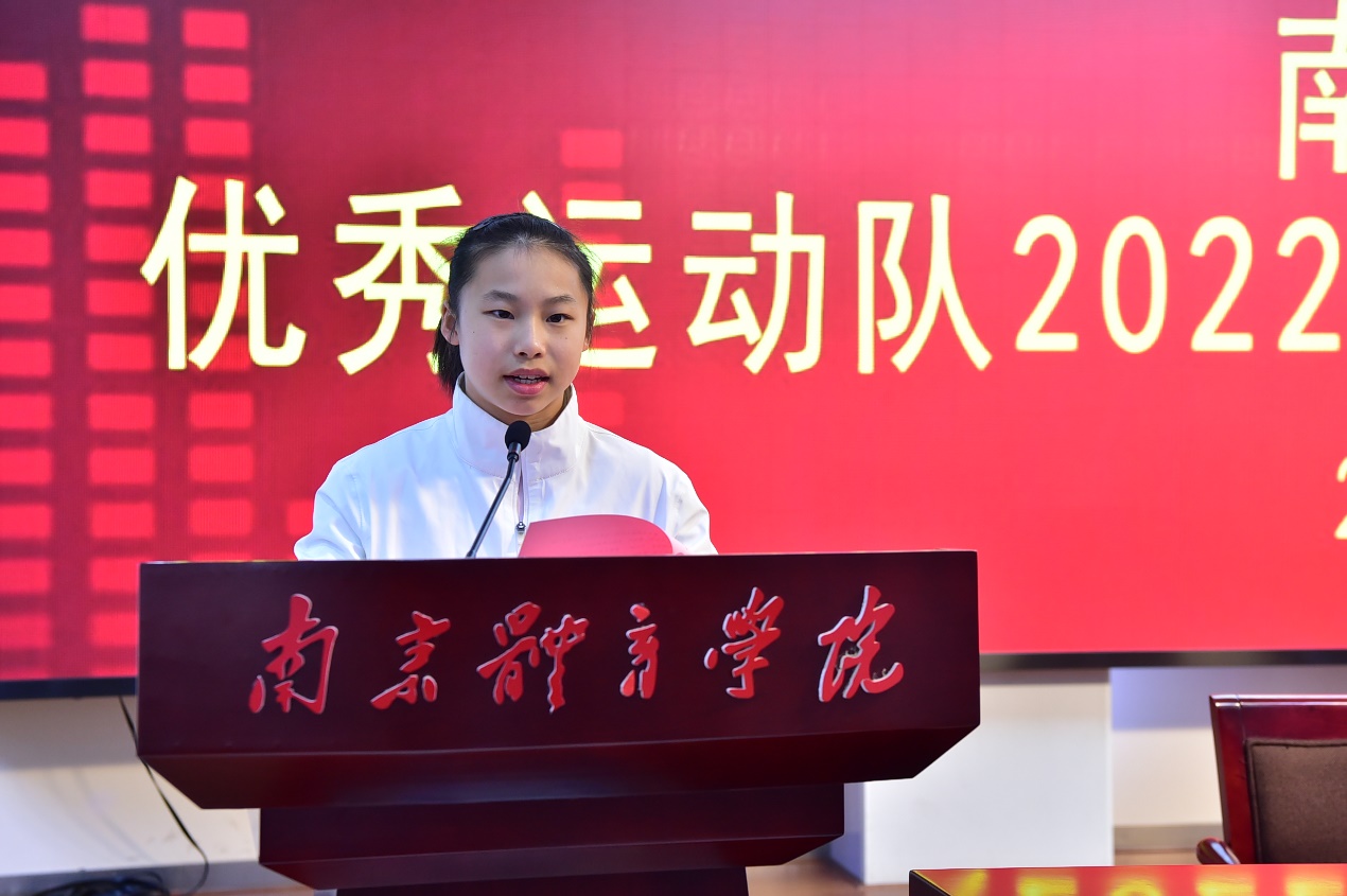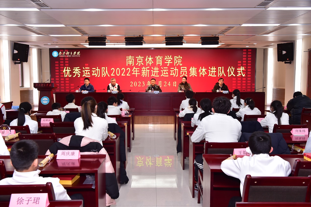 校党委常委、副校长金松、肖爱华出席仪式。优秀运动队2022年全体新进运动员及人事处、训练处、附属学校负责人,竞技体育二级学院负责人,优秀运动队领队、副领队参加仪式。