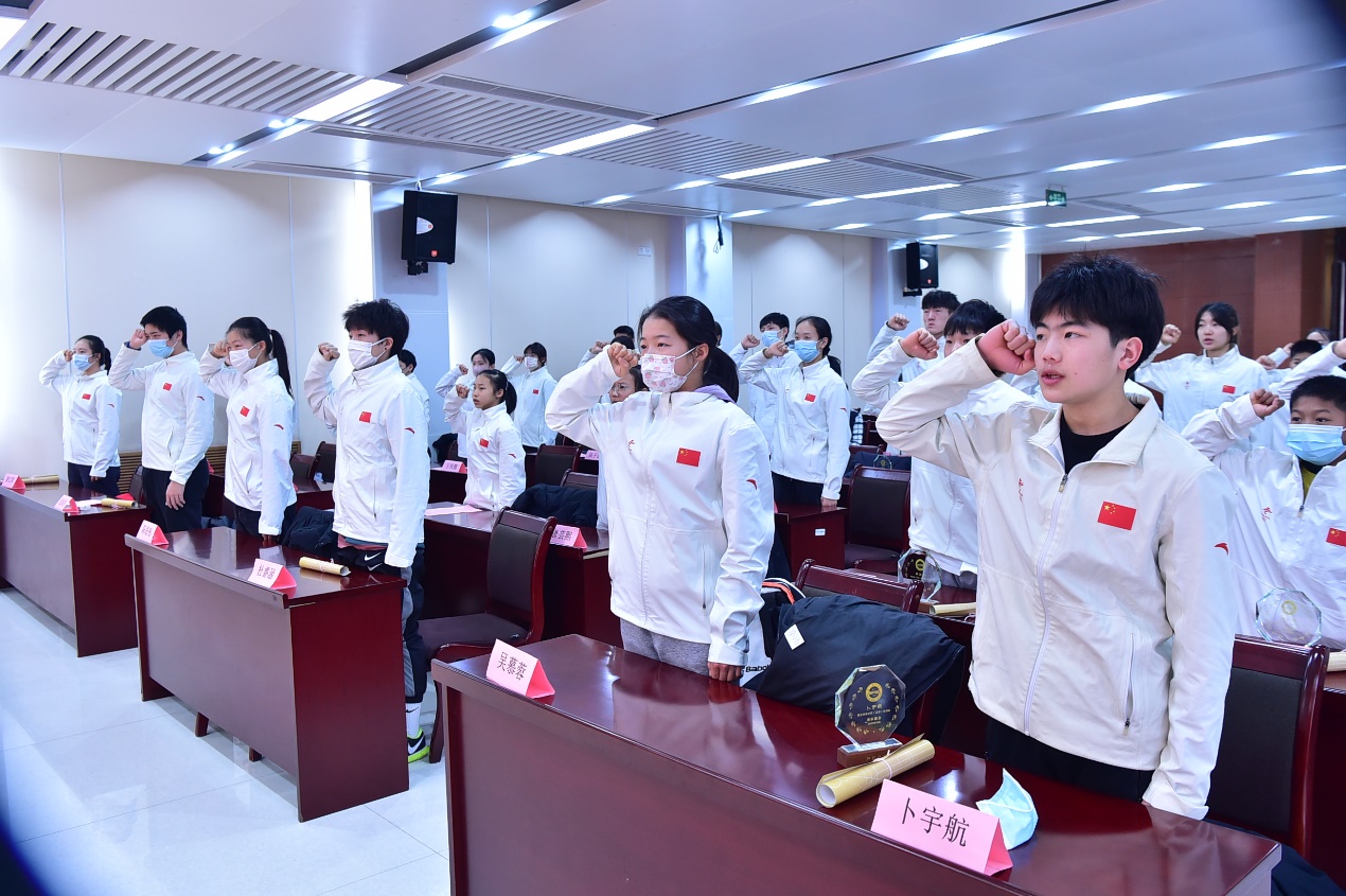 2月24日上午,我校在行政办公楼101会议室举行优秀运动队2022年新进运动员集体进队仪式。