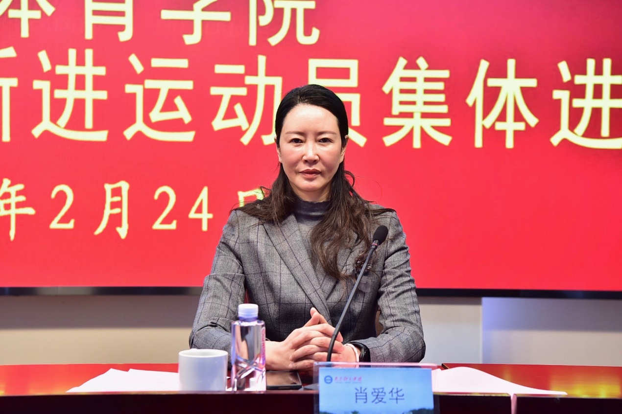 新进队运动员表示了热烈的欢迎。他在讲话中充分肯定了这批运动员在试训及测试中的优秀表现,并对他们的未来提出了四点希望。一是坚定信念,从党的二十大精神中汲取前进的力量。以党的体育方针为引领,以二十大精神为指南,树立远大理想,厚植爱国情怀,坚定人生目标,激发前进动力。二是刻苦训练,创造更加辉煌的竞技体育成绩。要以一名职业运动员的标准和素养要求自己,自觉自律,刻苦专注,做好点滴积累,早日将世界冠军、奥运冠军的梦想变为现实。三是团结守纪,将奥林匹克精神发扬光大。要在训练、比赛、生活中做真正的奥林匹克精神践行者,尤其要把反兴奋剂意识深深植入脑海,为维护奥林匹克的神圣和竞技体育的纯洁贡献应有的力量。四要全面发展,为实现体育强国梦想做出应有的贡献。要争做新时代全面发展的运动员,一手抓好训练任务,一手抓好文化学习,为建设体育强省、体育强国添砖加瓦。
