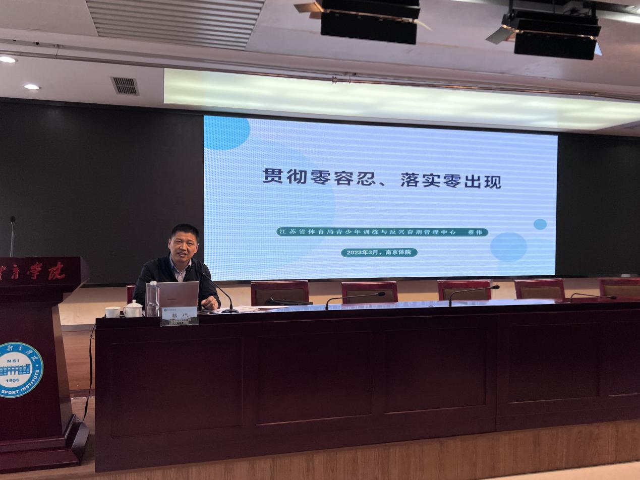 为坚决贯彻落实习近平总书记关于反兴奋剂工作的重要指示批示精神,加强我校反兴奋剂管理体系建设,全面规范和强化优秀运动队反兴奋剂管理工作,3月15日下午,我校邀请省体育局青少年训练与反兴奋剂管理中心主任蔡伟为优秀运动队进行“贯彻零容忍、落实零出现”反兴奋剂教育专题讲座。各竞技体育二级学院书记、院长,各运动队领队、副领队、2022年度新进队运动员,后勤处、运动康复医院相关负责同志参加了本次讲座。