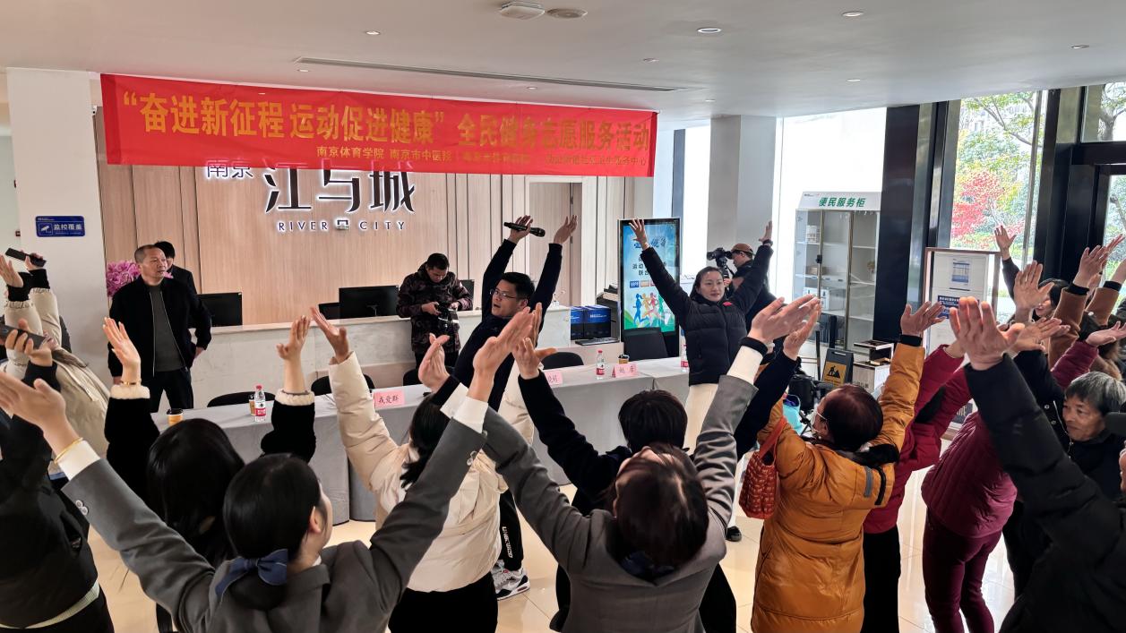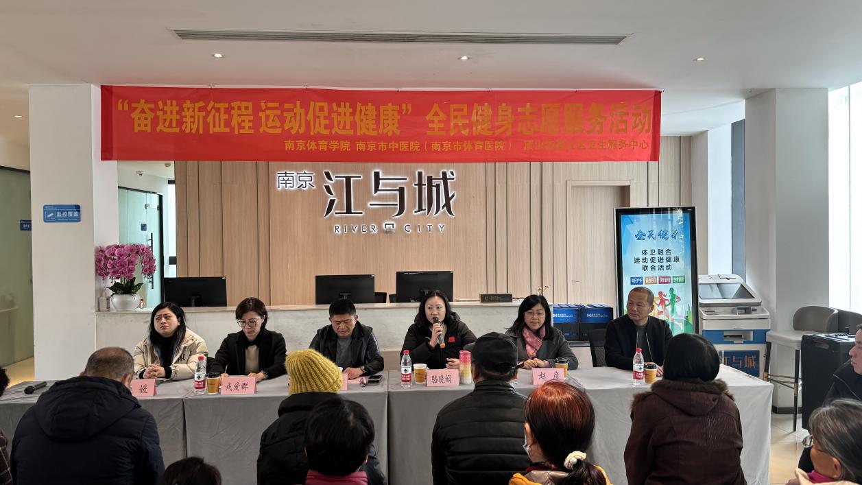 为促进中老年人和慢性病患者等重点人群的健康,11月30日上午我校与南京市中医院(南京市体育医院)、顶山街道社区卫生服务中心在南京江北江与城小区联合举办了“体卫融合、运动促进健康”全民健身志愿服务活动。missav游泳学院党总支书记骆晓娟、南京江北新区卫生健康和民政局副局长葛飞翔、missav运动健康学院副院长赵彦、南京市体育科学研究所所长戎爱群、南京市中医院(南京市体育医院)门诊部主任钱媛以及江与城社区的近50位居民参与了本次活动。