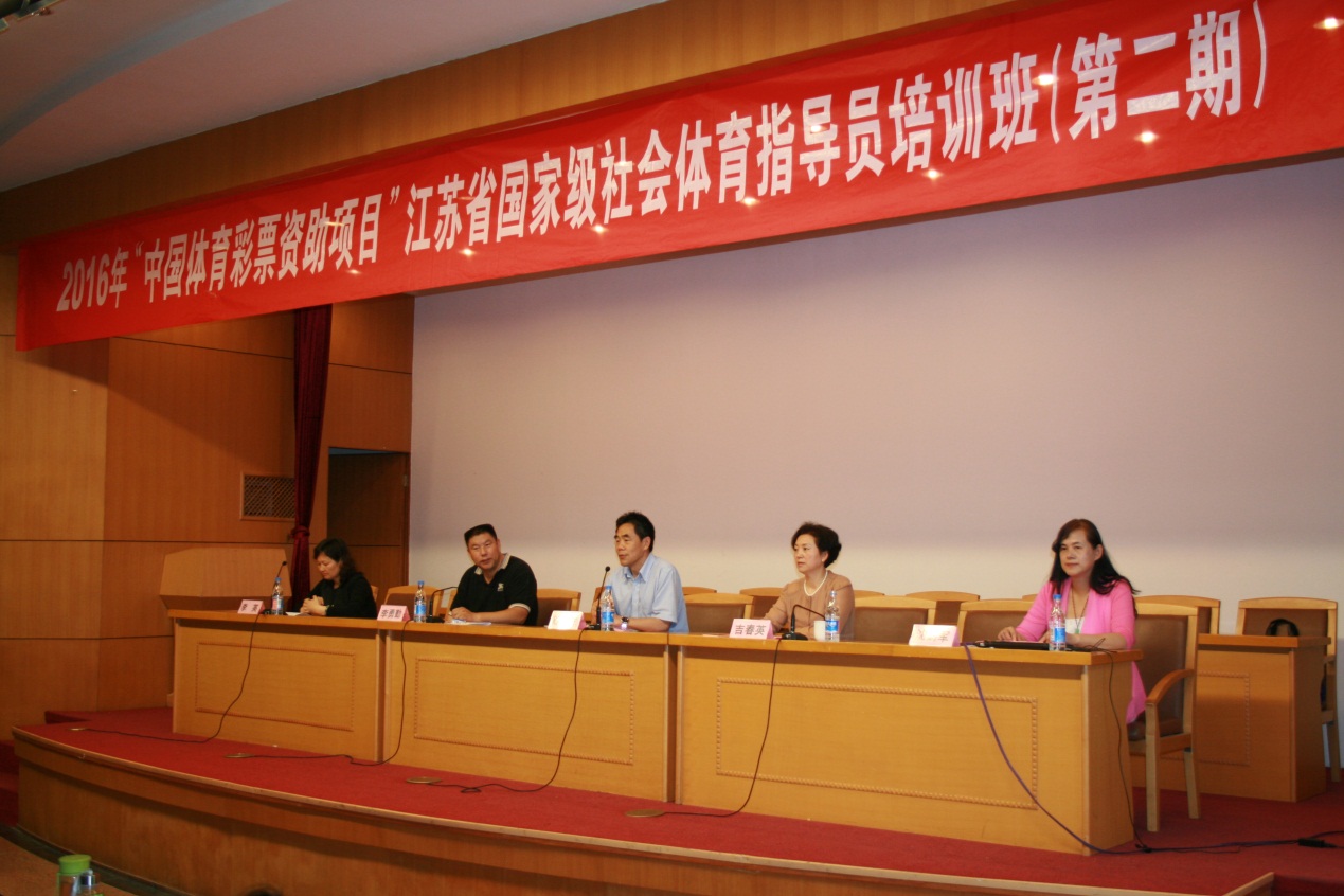 6月23日8:30,2016年“中国体育彩票资助项目”江苏省国家级社会体育指导员培训班(第二期)开班仪式在院报告厅举行。院党委书记陈国祥教授、省体育局群体处副处长吉春英同志、继续教育部主任李勇勤教授、体育系系主任沈鹤军教授、继续教育部副主任李英及全体工作人员和来自苏州、常州、盐城、连云港、宿迁、淮安、昆山的近100位学员出席了开班仪式。开班仪式由继续教育部主任李勇勤教授主持。