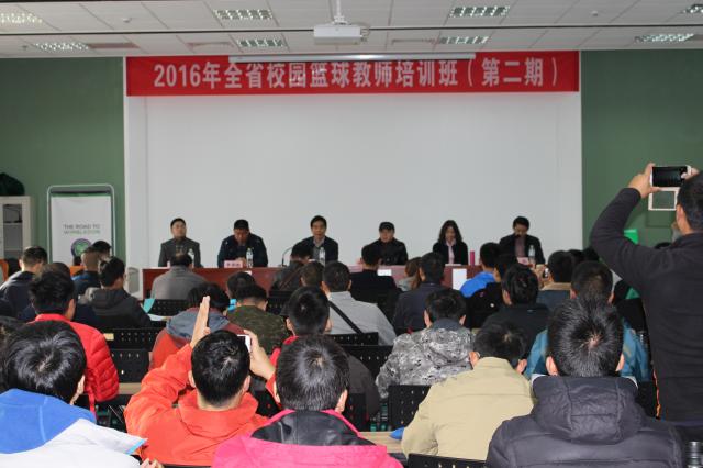 2016年全省校园篮球教师培训班(第二期)于11月2日上午8:30在我院网球学院多媒体室开班。出席本次开班开班仪式的领导有我院党委书记陈国祥教授,省教育厅体卫艺处处长、省学生体协副主席张鲤鲤,江苏省教育厅体育卫生与艺术教育处副处长、省学生体育协会中小学工作委员会副主任古恺,省体育局青少年训练与反兴奋剂管理中心副主任明洁,院继续教育部主任李勇勤教授等以及来自全省13个市的110多位校园篮球教师。