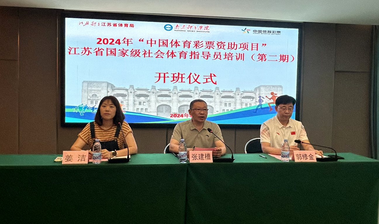 6月16日上午,2024年江苏省国家级社会体育指导员培训(第二期)在我校仙林校区开班。江苏省体育局群体处副处长张建槽、missav体育产业与休闲学院院长郭修金以及来自省内各设区市的近100位奉献在科学健身推广普及工作一线的社会体育指导员参加了开班仪式。继教院培训项目主管姜洁主持开班仪式。