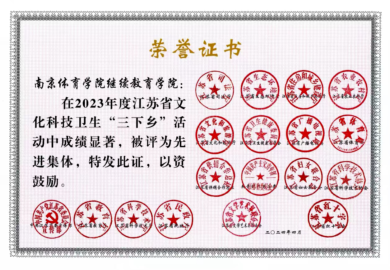 近日,省委宣传部发文(苏宣通〔2024〕18号)表扬 2023年江苏省文化科技卫生“三下乡”先进集体、先进个人,我校继续教育学院作为先进集体受到表彰。