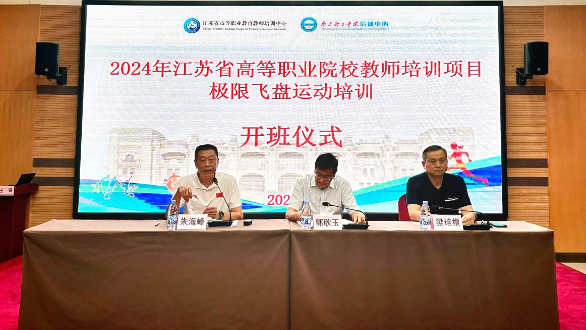 9月12日上午,2024年江苏省高等职业院校教师培训项目极限飞盘运动培训在我校开班。江苏省高等职业教育教师培训中心主任、江苏理工学院职业教育学部党总支书记郭耿玉;全国高等学校体育教学指导委员会委员、江苏学校体育教学指导委员会副主任、南京信息职业技术学院体育部部长梁培根与来自省内高职院校的60位体育课程教师共同出席了开班仪式。missav继续教育学院副院长朱海峰主持开班仪式。