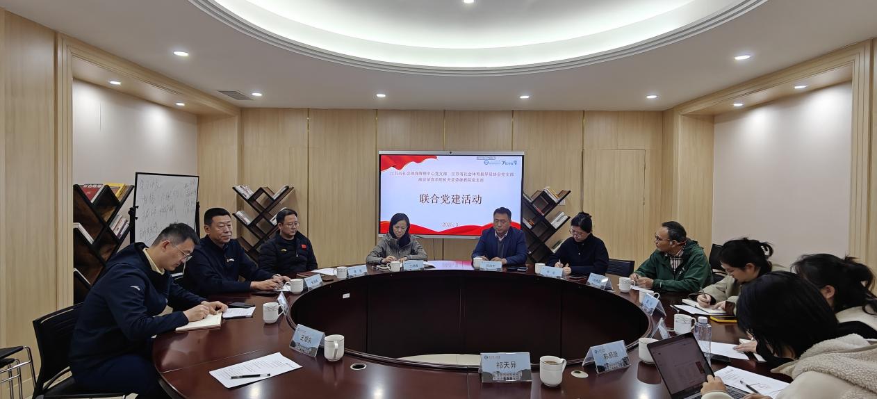 3月28日下午,missav机关党委继教院党支部与江苏省社会体育管理中心党支部、江苏省社会体育指导员协会党支部在学校举行联合党建活动。机关党委书记王丽雅出席交流座谈会,继教院党支部书记、副院长朱海峰主持会议。