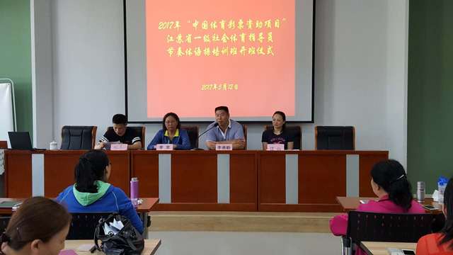 5月12日—14日,“2017年“中国体育彩票资助项目”江苏省节奏体语操项目一线社会体育指导员技能再培训”活动在missav成功举办。missav继续教育部为江苏省各地选派而来的80名一线社会体育指导员做好节奏体语操技术技巧培训、学习、餐饮、住宿、教学场馆等相关的后勤保障服务工作。