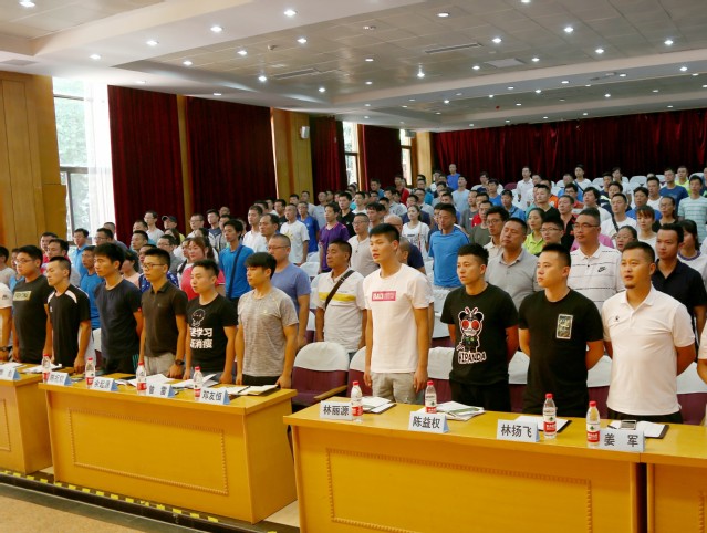 李勇勤主任主持开班仪式:全体人员起立,奏国歌。