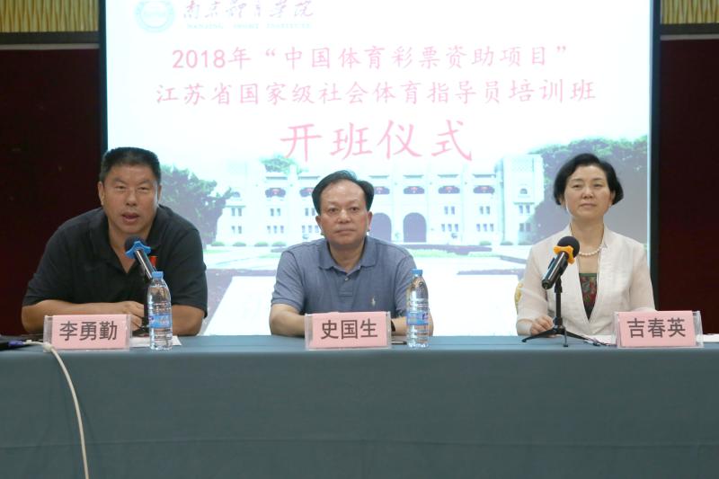 2018年“中国体育彩票资助项目”江苏省国家级社会体育指导员培训(第一期)开班仪式在海陵会议中心举行,出席开班仪式的领导有:missav副校长史国生教授、省体育局群体处副处长吉春英女士、missav继续教育部、培训中心主任李勇勤教授。开班仪式由李勇勤主持。