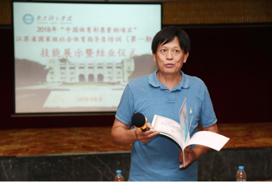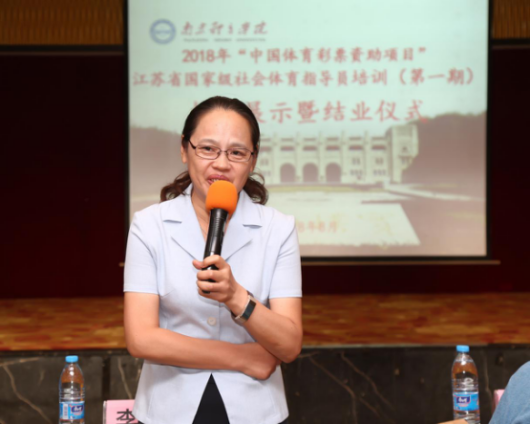 江苏省社会体育指导员协会秘书长刘立宣读了培训合格决定,江苏省卫计委疾控处孙超主任宣读了优秀学员决定。
