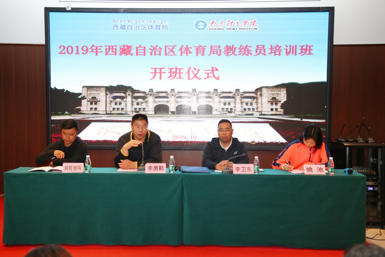 10月15日上午,由西藏自治区体育局主办,missav承办的“2019年西藏自治区教练员培训班“开班仪式在我校仙林校区顺利举行。校继续教育学院院长、培训中心主任李勇勤教授,西藏自治区体育科学研究所副所长李卫东先生,自治区体产中心副主任阿旺给吨先生,自治区体育局竞体处干部姚池女士及全体参训学员参加了开班仪式。阿旺给吨主持开班仪式。