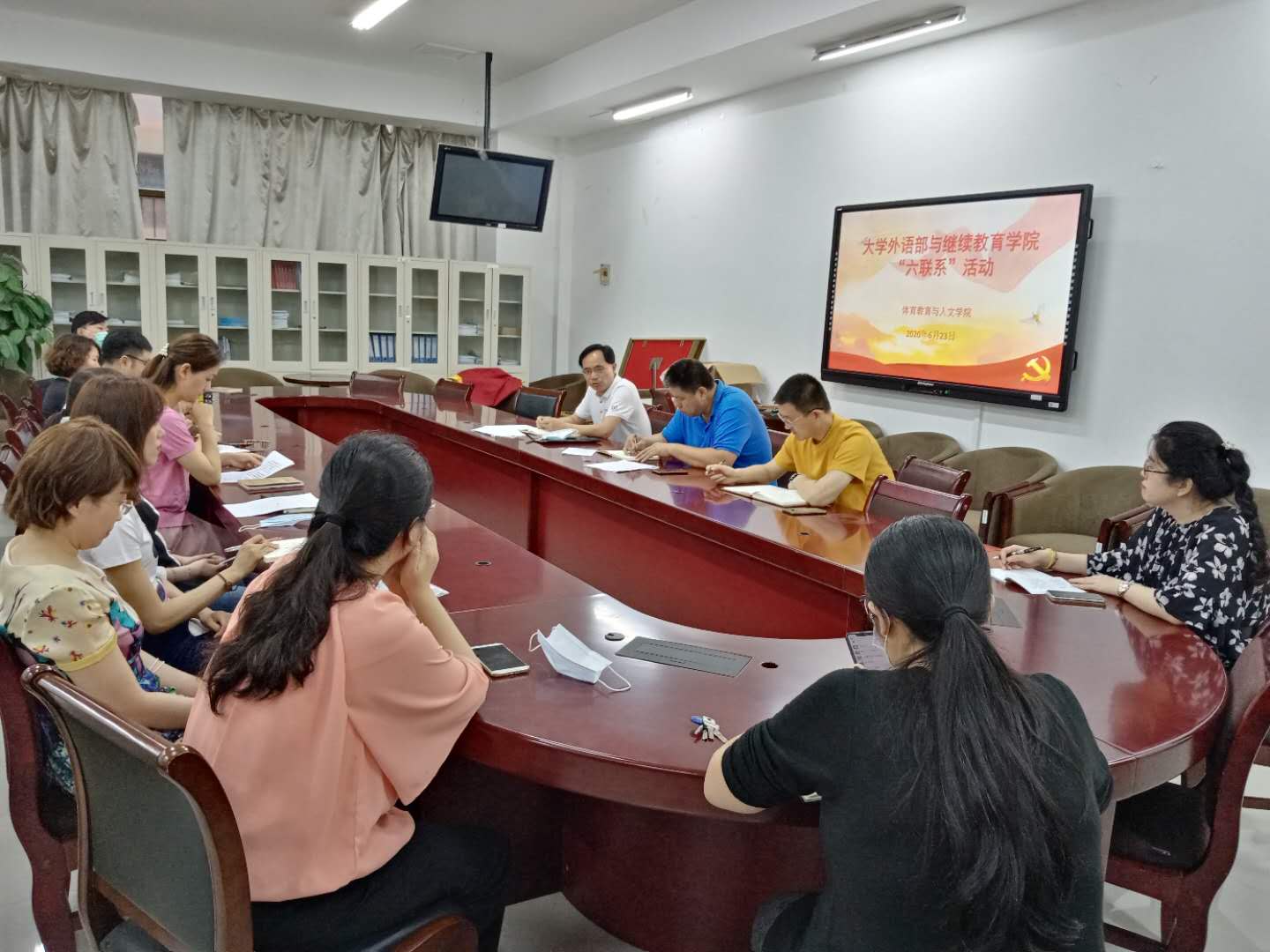 为贯彻落实学校关于开展“六联系”工作的要求,2020年6月23日中午,继续教育学院与体育教育与人文学院大学外语部在教学办公楼115会议室召开了六联系见面会。会议由大学外语部党支部书记刘影倩主持,体育教育与人文学院党总支书记邹国忠列席。