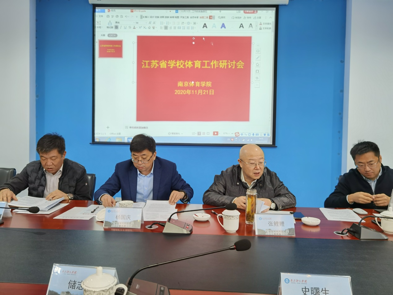 校党委副书记、校长杨国庆,省教育厅体卫艺处处长张鲤鲤、主任古恺,省体育局青少处处长刘斌、青管中心主任蔡伟及南京师范大学体育科学学院院长储志东等来自省高校体育教学指导委员会、省学生体质健康促进研究中心的专家教授和一线教研员代表参加了研讨会。