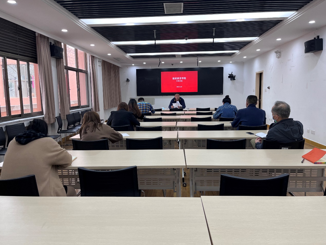 3月14日下午,继续教育学院在图书馆第二报告厅召开了工作会议.李勇勤主持会议。