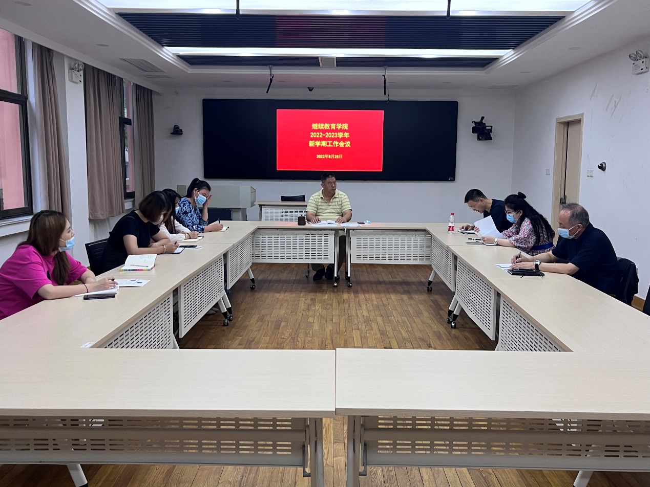 8月25日上午,继续教育学院在图书馆第二报告厅组织召开2022-2023学年新学期工作会议。