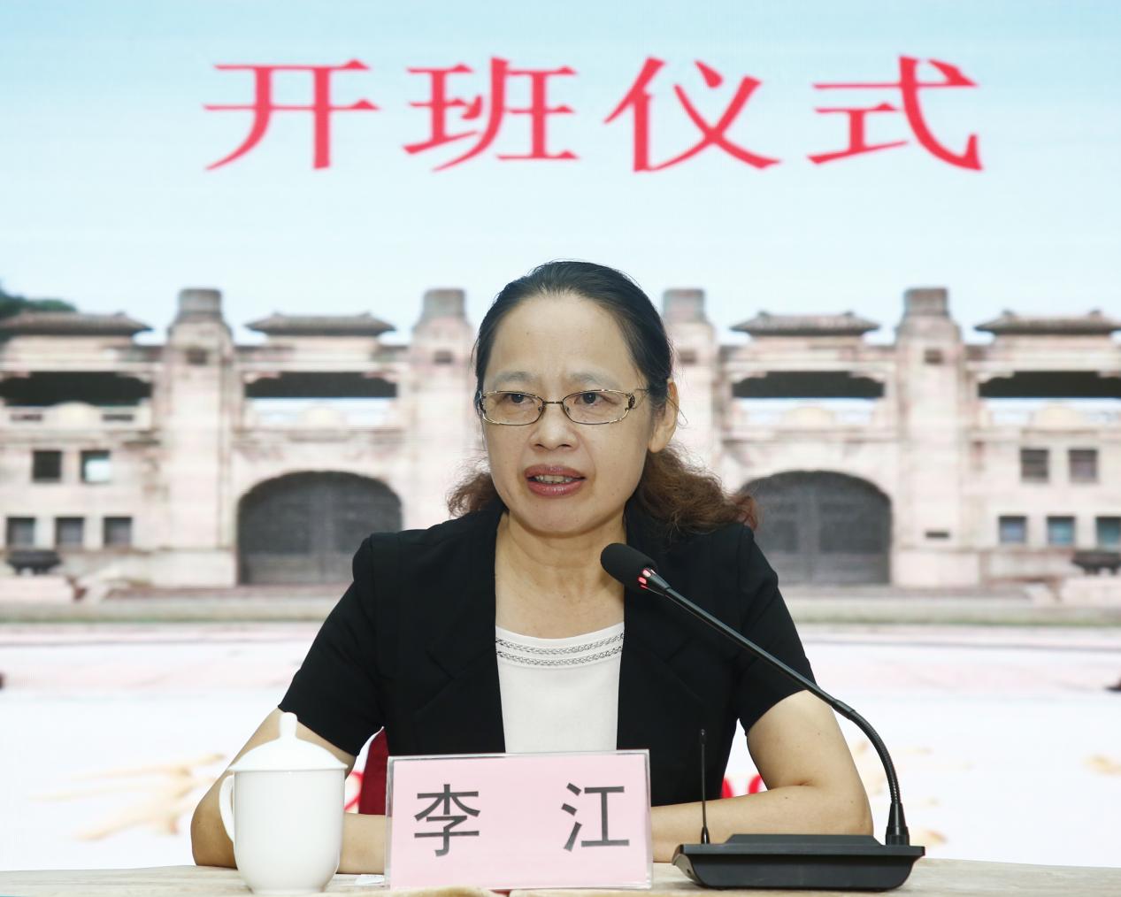 李江在致辞中对出席开班仪式的嘉宾和参训学员表示热烈的欢迎,她向参训学员介绍了我校学、训、研“三位一体”办学特色及建校以来各方面取得的辉煌成绩的基本情况。她强调学校从上到下对此次培训的高度重视,在严格执行疫情防控政策的前提下,认真做好培训前的各项准备工作,希望大家能够通过培训学有所获、学有所成,成为我省全民健身的宣传者,科学健身的指导者,健身活动的组织者,体育场地设施得维护者,健康生活方式的引领者,为加快推进我省全民健身事业的高质量发展做出贡献。
