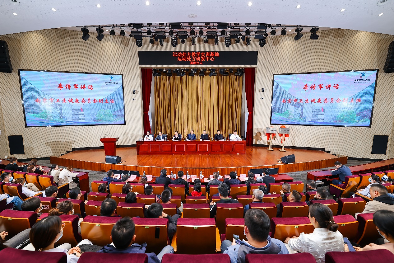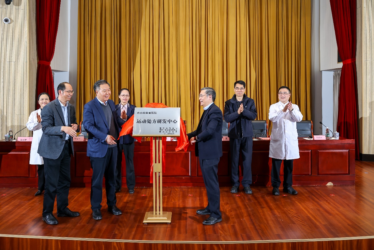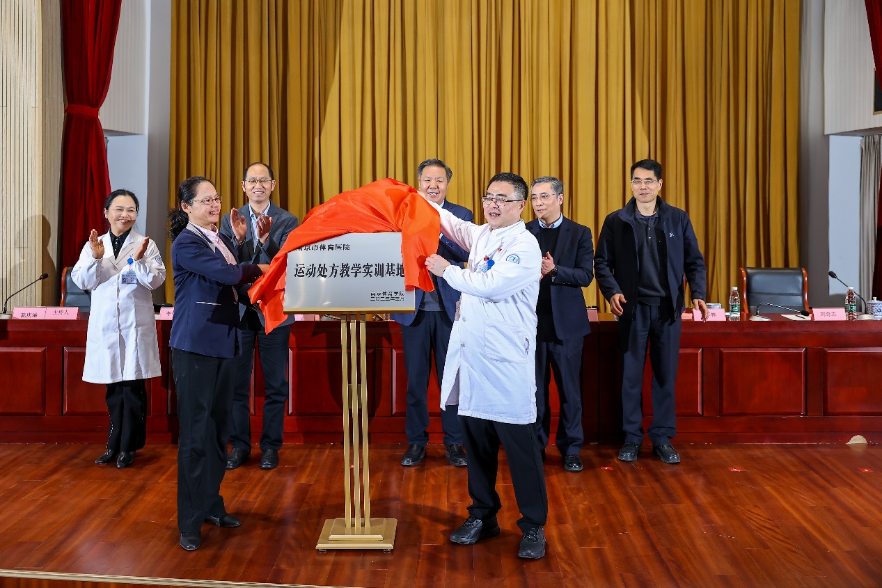 在仪式上,朱传耿、董浩、李传军为“运动处方研发中心”揭牌,李江与刘志奇为“运动处方教学实训基地”揭牌。