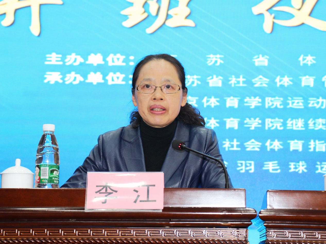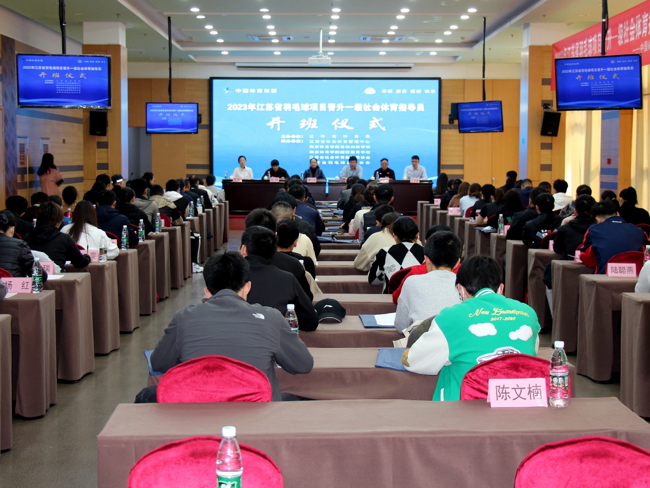 missav党委常委、副校长李江,省社会体育管理中心主任、省社会体育指导员协会副会长孙谦,missav运动训练学院院长赵琦,江苏省社会体育管理中心综合部部长、省社会体育指导员协会秘书长李彤,省羽毛球运动协会裁判委员会副主任徐德魁,省社会体育管理中心业务二部部长丁浩睿以及来自全省十三个地市100余位学员参加了开班仪式。李彤主持开班仪式。