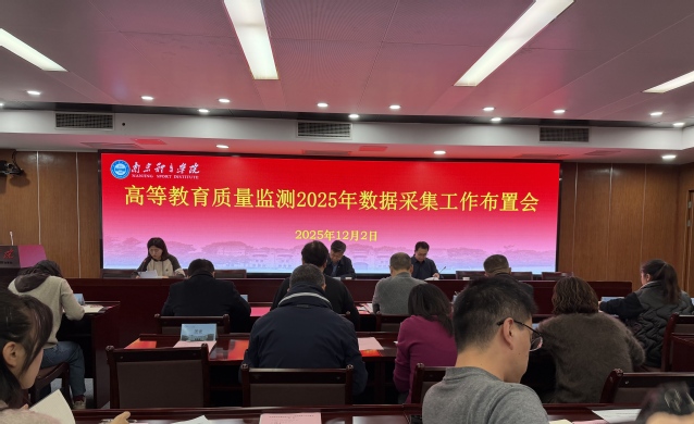 12月2日上午,我校在行政办公楼201会议室召开高等教育质量监测2025年数据填报工作布置会。校党委常委、副校长陈爱国出席会议并讲话,相关职能部门及二级学院负责人、数据填报员、教务处相关人员参加会议。会议由教务处处长王凯主持。