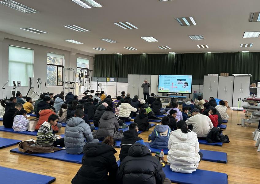 活动由运动健康学院戴剑松教授领衔设计与指导。作为走跑运动健康研究领域的知名专家,戴教授及其团队将运动生理学理论与青少年体质发展规律深度融合,贯穿于热身、跑步、恢复等全环节,强调“科学运动必须植根于细节,高校科普的使命是让知识转化为行动”。徐凯副教授以《一起动起来,健康乐开怀》为主题,结合生动案例阐述了亲子运动在促进身心健康、增强家庭纽带方面的多重价值与实践方法。