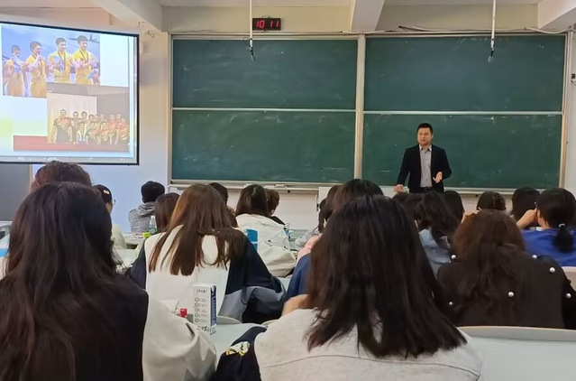 赵老师通过讲他的体育故事,与同学们分享自己与体育的缘分,冠军成长的故事,以及他对冠军精神的理解,让同学们认识到祖国的荣誉高于一切,激发了同学们的爱国主义情感和集体主义精神,以及顽强拼搏的体育精神。赵老师还与在场的同学分享了他冠军成长道路上的挫折,他强调要坚持不懈,百折不挠,乐观积极面对困难和挫折,引导同学们树立正确的世界观、人生观和价值观。最后,赵老师提出了体育人的责任与使命,要坚持祖国至上,振兴中华,为“体育强国”战略作出贡献!