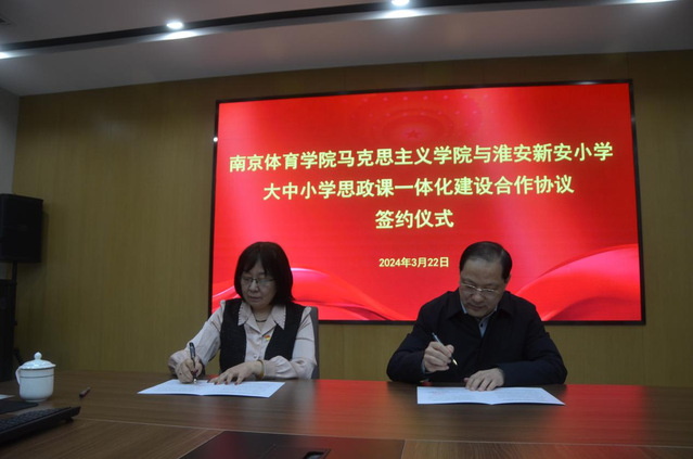 座谈会上,两校就如何调动思政育人积极性、如何发挥两校资源优势,深入推动大中小学思政课一体化理论研究与实践探索开展深入研讨,并达成共识。马克思主义学院院长葛翠柏与淮安市新安小学校长张大冬,签订了《missav马克思主义学院与淮安市新安小学大中小学思政课一体化共建协议书》。双方一致表示,今后两校将结合自身优势,在思政育人工作中加强合作交流,因地制宜、因势利导,充分挖掘两校特色资源优势,共同打造理论与实践相结合的创新性思政育人共同体,开展一系列大中小学思政课一体化建设品牌活动,努力形成一套可复制工作机制,打造一批示范思政“金课”。