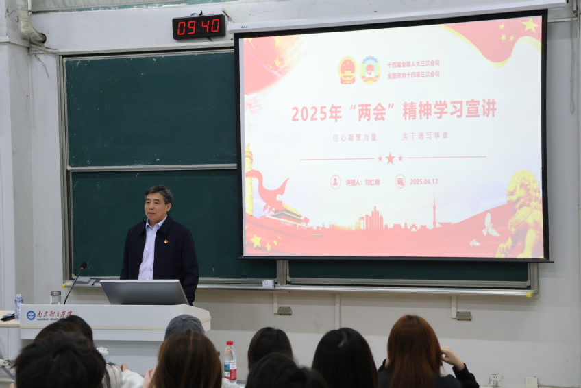为贯彻落实“2025年全国两会精神”,推动思政课的改革创新,4月17日上午,校党委书记刘红明以“2025年全国两会精神宣讲”为题,为2024级舞蹈表演专业学生带来了一堂精彩纷呈的专题思政课。