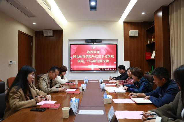 12月19日,河北体育学院直属马克思主义学院党支部书记周德胜一行3人到我院考察交流,马克思主义学院直属党支部书记、院长葛翠柏,马克思主义学院直属党支部副书记、副院长朱晓林,马克思主义学院教师代表参加交流座谈会,会议由葛翠柏主持。