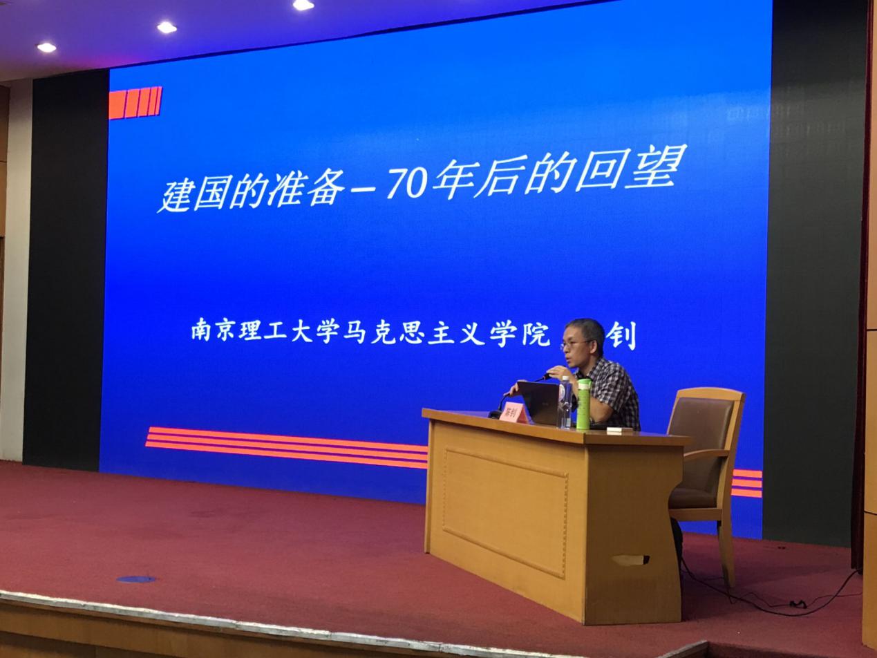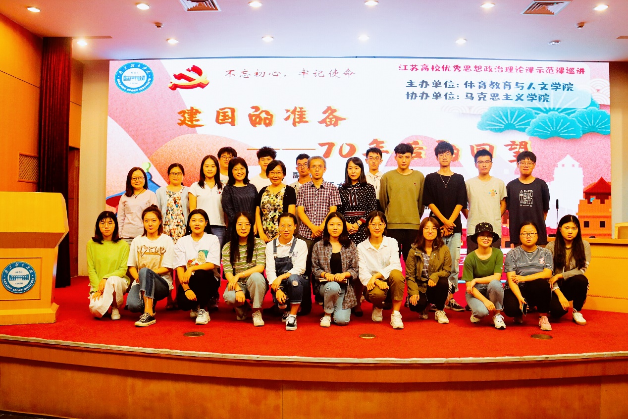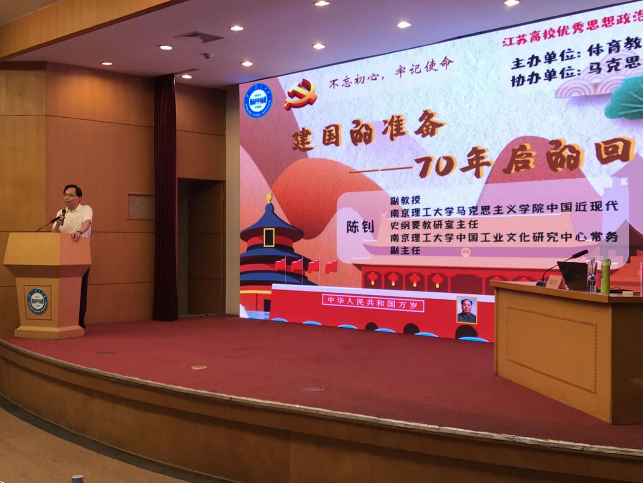 为深入学习宣传贯彻习近平总书记在学校思想政治理论课教师座谈会上的重要讲话精神,实施好“新时代高校思想政治理论课创优行动”,高质量办好新时代高校思想政治理论课,用习近平新时代中国特色社会主义思想铸魂育人,努力培养担当民族复兴大任的时代新人。 9月25日晚,我校马克思主义学院、体育教育与人文学院共同邀请江苏省高校优秀思政示范课巡讲团成员、南京理工大学马克思主义学院陈钊副教授来我校开展题为“建国的准备——70年后的回望”的专题示范课,体育教育与人文学院师生、马克思主义学院教师和马克思主义学院学生社团参加了本次活动。