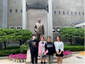周恩来总理铜像前合照