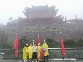 红军长征时面临着前有堵截、后有追兵的危险局面,免不了一场场生死相搏的大小战役,娄山关战役是红军长征以来的首次大捷,毛泽东同志曾在娄山关上感慨万千,吟出了那首悲壮的著名诗句《忆秦娥·娄山关》。为实地感受这段历史,团队成员来到娄山关战斗遗址,当地“天无三日晴”的独特气候让原本晴朗的天空瞬间乌云盘绕,等到半山腰时就已经狂风大作、雨点密布了。冒着风雨、踩着石阶,登上海拔1400米的小尖山山峰,四周万峰矗立、巍峨险峻,红军战士就曾在这个十几平米的山顶用石头磊成工事,击溃数次敌军反扑。连接小尖山与大尖山的是一座长100米,宽5米的铁索桥,桥名“长空”,出自毛泽东同志诗词“长空雁叫霜晨月”。娄山关红军战斗遗址陈列馆采用现代化弧幕电影、声光电沙盘等手段模拟当年的激战,全方位介绍了红军当年在娄山关的战斗情况,展示了1935年2月中国工农红军在娄山关战斗的恢弘历史画卷,馆内还陈列有许多图文史料与珍贵文物,成员们在讲解员细致的解说中,感受革命传统教育和红色文化熏陶。