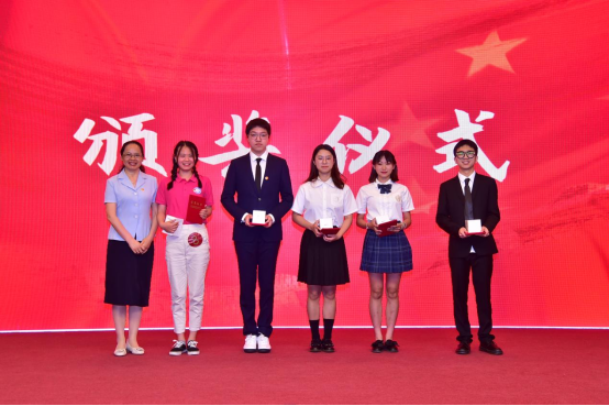 省委教育工委党史学习教育第二指导组领导殷定泉、李沛霖为一等奖获奖者代表颁奖