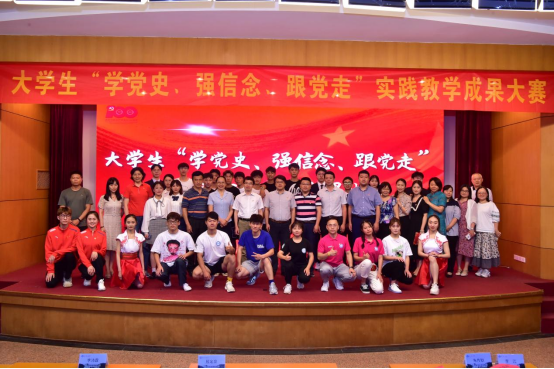 最后,校党委书记朱传耿发表讲话,他表示恰逢建党一百周年,在全党开展党史学习教育之际,马克思主义学院结合自身工作业务特点与党史学习教育需要,将思政课实践教学与党史学习教育巧妙融合,组织全校大学生开展以“学党史、强信念、跟党走”为主题的思政课实践教学展示活动,对于引导广大学生学史明理、学史增信、学史崇德、学史力行,从党史的学习中汲取思想的力量、信仰的力量、道德的力量和实践的力量有着重要意义。本次活动充分调动了我校青年大学生学党史的积极性,创作出一批高质量的情景剧、微视频和党史故事作品,使得我校党史学习教育形成师生同频共振的双主体格局,营造了比学赶超、开拓奋进的浓厚党史学习氛围。