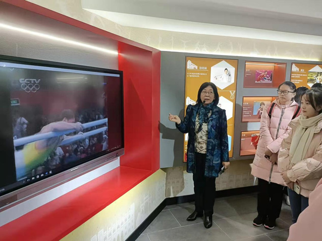 随后,葛翠柏和学生们参观了中国近现代体育陈列馆,葛翠柏讲解了中央体育场的建设历史、近代中国举办的七届全国运动会、中国举办和参加的世界远东运动会、奥运会等等,让学生们了解一代体育人为体育救国做出的艰辛努力,为中国体育事业作出的伟大探索。