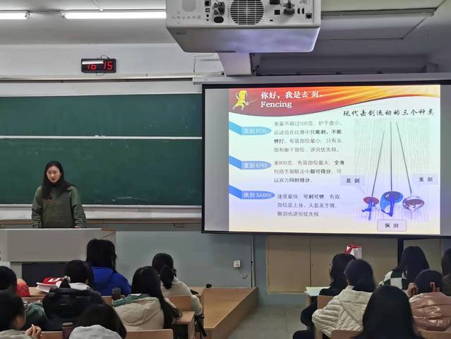 12月9日下午,中国首枚奥运会击剑团体金牌得主、中国首枚世锦赛击剑团体金牌得主、击剑大满贯得主,现任missav乒羽学院副院长的骆晓娟走进思政课堂,她首先给同学们介绍了击剑中的重剑这个项目特征,与大家分享了自己不惧低谷显铮铮“侠女”志、坚守初心展拳拳爱国情的酸甜苦辣。