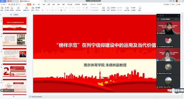 朱晓林老师在分组讨论中,做了《“榜样示范”在列宁信仰建设中的运用及当代价值》主题发言。朱老师结合党的二十大报告中,习近平总书记提出的“我们要坚定对马克思主义的坚定信仰、对中国特色社会主义的坚定信念”的相关论述,阐释坚定马克思信仰的方法。她提出:列宁高度重视运用“榜样”来教育和激励群众,将“榜样”视为坚定革命理想和马克思主义信仰的载体,从不同社会制度对比角度,分析榜样示范的意义。从历史维度、理论指向、价值旨趣、伦理尺度、方法载体五个维度,厘清马克思主义经典作家关于“榜样”的理论要旨,阐释榜样示范的时代价值。朱老师指出:理论的研究要关照现实,坚持问题导向,聚焦实践中遇到的新问题,更好地指导中国实践,回答中国之问,世界之问,人民之问,时代之问,用马克思主义信仰铸魂育人。