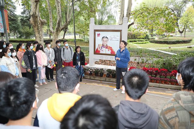 在实践教学环节中,许安琪带领同学们徜徉在全新落成的missav奥运冠军大道上,将自己拼搏进取、砥砺前行的运动生涯向大家娓娓道来,与大家共同畅谈学习贯彻党的二十大精神,悉心培养新一代运动员建功赛场、教育引领新时代大学生成长成才的真知灼见。