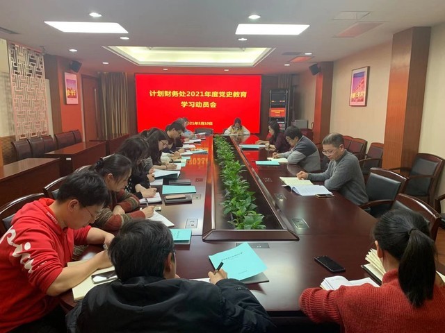 3月10日下午,机关第二党总支第三党支部在行政办公楼301会议室召开党史学习教育动员会。支部书记王利雅主持会议,计划财务处全体人员参加了会议。